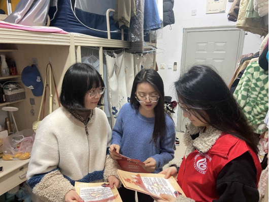 黨員同志們化身消防知識宣傳員,走進學生宿舍,分發消防安全宣傳單。以安全警示案例為載體,通過圖文與口述相結合的方式宣傳宿舍防火“四不”要求,即:不在宿舍存放易燃易爆物品,不使用違規電器,不在宿舍吸煙,不在宿舍要斷電。同時,從造成宿舍起火原因和宿舍火災應對措施兩方面,向同學們宣傳在宿舍生活應該如何防范宿舍火災發生以及發生火災之后同學們應該如何自救互救,還普及了宿舍防火的法律法規以及校紀校規。