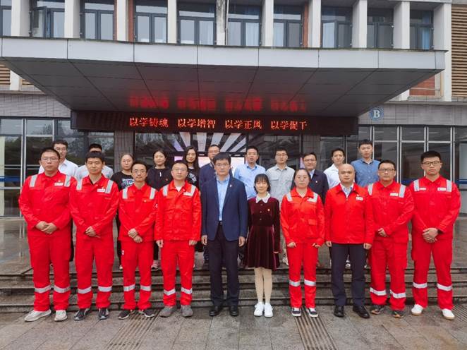 企校雙方互贈書籍——《管網精神》《油氣管道多相流》,雙方在三期油氣儲運實驗室參觀交流,并合影留念。