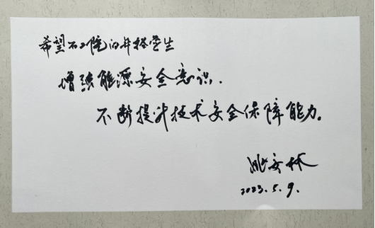 會后,師生共同誦讀黨的二十大報告中對青年的寄語,兩位老教授紛紛寫下對我院學子的囑托,希望大家堅定理想信念,增強能源安全意識,不斷提升技術安全保障能力。