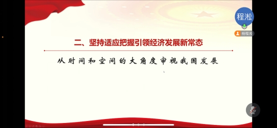 楊程淞同志帶領同志們學習了黨的二十大報告中 “推動經濟高質量發展”、“實施科教興國戰略,強化現代化建設人才支撐”兩個部分。黨的十八大以來,習近平總書記十分重視科技、人才和創新三者的重要作用。在黨的二十大報告中,習近平總書記提出了一系列新論斷、新戰略、新要求。就有關教育的重要論述來看,黨的二十大報告將教育工作擺在尤為重要的突出位置,對“實施科教興國戰略,強化現代化建設人才支撐”作出專章部署,為新時代教育工作和科技創新工作指明了前進方向,為加快建設教育強國提供了根本遵循和行動指南。