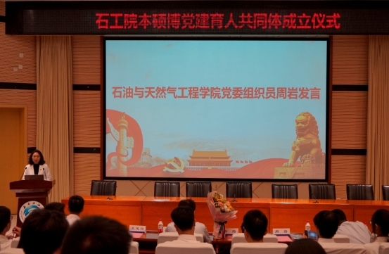 周巖代表學(xué)院黨委對油氣精英領(lǐng)航學(xué)生黨支部、海洋油氣工程研究所黨支部、碩博士黨支部結(jié)對共建表示誠摯地祝賀,并總結(jié)道:“石工院本碩博黨支部共建是落實(shí)“三全育人”工作要求,也是牢牢把握學(xué)習(xí)貫徹習(xí)近平新時代中國特色社會主義思想主題教育 “學(xué)思想、強(qiáng)黨性、重實(shí)踐、建新功” 總體要求的落實(shí),更是一種新的黨建模式的探索與創(chuàng)新。”