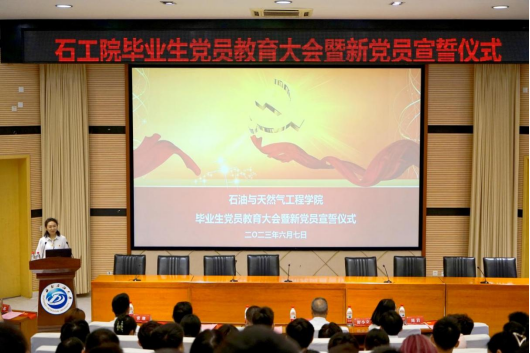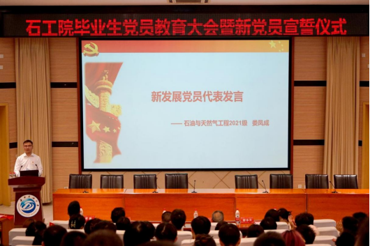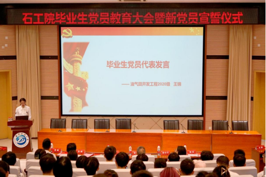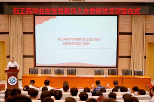 畢業生黨員教育大會暨新黨員入黨宣誓儀式是石工院學生黨員黨性教育提升的常態工作,旨在激勵青年黨員踐行一生跟黨走的堅定信仰,筑牢青年黨員愛黨愛國、愛校榮校的精神品格,勇做走在時代前列的奮進者、開拓者和奉獻者。