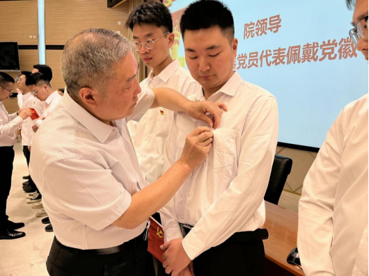 會議在莊嚴的《國際歌》中拉開序幕。全體黨員在張天軍的領誓下,面向黨旗莊嚴宣誓,表達為共產主義奮斗終身的決心。隨后,張天軍和錢廣為新發展黨員代表佩戴黨徽,亮明黨員身份,維護黨員形象,彰顯黨員擔當。畢業生黨員代表油氣田開發工程2020級王錦發言表示,感謝母校和全體領導老師的培育,并表示將時刻銘記黨員身份,嚴格以黨員標準要求自己,在學習、工作和生活中踐行入黨誓詞。新發展黨員同志石油與天然氣工程2021級婁鳳成代表全體新發展黨員同志向黨表決心,堅決做到堅定理想信念,把穩思想之舵;錘煉過硬本領,劃好實干之槳;勇擔時代重任,揚起使命之帆。