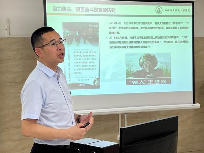 為深入學(xué)習(xí)貫徹習(xí)近平新時(shí)代中國特色社會(huì)主義思想,引導(dǎo)學(xué)生黨員學(xué)深悟透擔(dān)使命,凝心鑄魂筑根本,6月9日晚7點(diǎn),石工院黨委副書記、紀(jì)委書記錢廣以“在黨領(lǐng)導(dǎo)新中國石油工業(yè)百年歷史中汲取奮斗力量”為題,在臨溪書院為學(xué)生黨員及新發(fā)展黨員代表講授專題黨課。