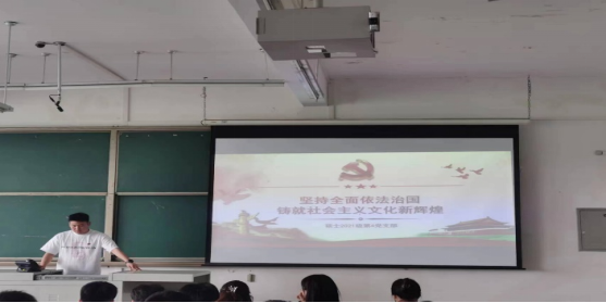 會(huì)上,我們深入學(xué)習(xí)了習(xí)近平總書記的重要講話。談到“堅(jiān)持全面依法治國,推進(jìn)法治中國建設(shè)”,謝玉森同學(xué)提到“對于每位公民來說,法律與日常生活息息相關(guān),法制觀念的提升對于和諧社會(huì)的建立具有十分重要的作用”。當(dāng)代大學(xué)生作為將來社會(huì)主義事業(yè)的建設(shè)者,作為實(shí)現(xiàn)國家興旺發(fā)達(dá)的不竭動(dòng)力,作為推動(dòng)社會(huì)主義現(xiàn)代化的主力軍,是治國安邦的重要人才。因此,在全面依法治國進(jìn)程中提升大學(xué)生的法治意識(shí)有著巨大的現(xiàn)實(shí)意義。談到“推進(jìn)文化自信自強(qiáng),鑄就社會(huì)主義文化新輝煌”,梁虎虎同學(xué)提到“大學(xué)是建設(shè)社會(huì)主義文化強(qiáng)國的重要力量,是立德樹人、培養(yǎng)人才的地方,是青年人學(xué)習(xí)知識(shí)、增長才干、放飛夢想的地方”。因此,在面向未來,推進(jìn)文化自信自強(qiáng)、鑄就社會(huì)主義文化新輝煌的宏偉事業(yè)中,作為當(dāng)代大學(xué)生要充分發(fā)揮自身優(yōu)勢,為推進(jìn)中華文化繁榮興盛貢獻(xiàn)自身力量”。