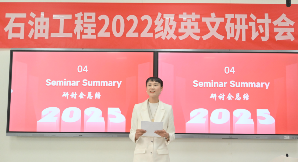 研討會設置全英文專題匯報環節,五個研究小組圍繞采油工程領域的核心領域、前沿技術和熱點問題,依次完成10分鐘學術演講,并開展5分鐘互動答辯。現場通過“匯報+問答”雙環節,充分展現學生專業英語表達能力與創新思維。