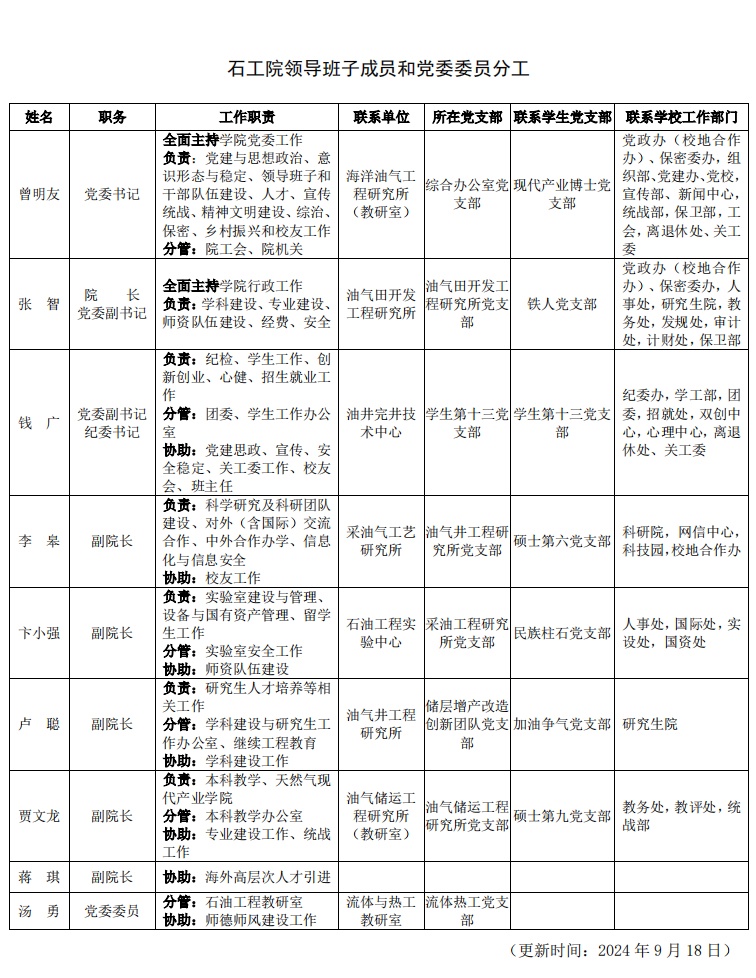 領導班子及分工