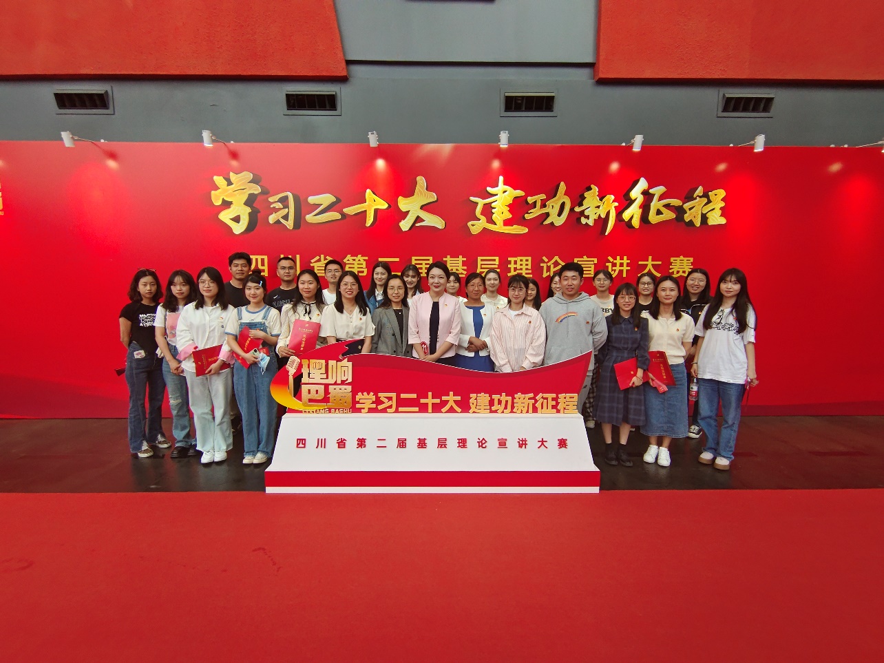 5月15日下午,四川省“學(xué)習(xí)二十大 建功新征程”第二屆基層理論宣講大賽決賽在四川廣播電視臺舉行。我院黨委副書記林莉教授經(jīng)過激烈的系統(tǒng)預(yù)賽,脫穎而出,作為省委教育工委推薦的兩所高校宣講代表之一參加決賽。我院中國近現(xiàn)代史綱要教研室教師邵琪、何松蔚,習(xí)近平新時代中國特色社會主義思想概論教研室教師萬媛,輔導(dǎo)員李錦韜以及研究生2021級、2022級部分學(xué)生赴現(xiàn)場觀摩學(xué)習(xí)。
