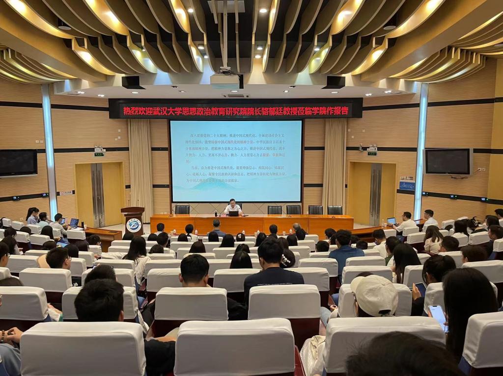 5月21日上午,學(xué)院邀請(qǐng)武漢大學(xué)思想政治教育研究院院長駱郁廷教授在思學(xué)樓A114學(xué)術(shù)報(bào)告廳作學(xué)術(shù)報(bào)告,報(bào)告主題為“鑄強(qiáng)中國式現(xiàn)代化的精神力量”。我校黨委常委、宣傳部部長、組織部部長易聯(lián)樹,馬克思主義學(xué)院黨委書記、院長崔發(fā)展,黨委副書記、紀(jì)委書記林莉出席報(bào)告會(huì),學(xué)院2021級(jí)、2022級(jí)全體碩士生及教師代表到場(chǎng)參加本次報(bào)告會(huì)。報(bào)告會(huì)由易聯(lián)樹主持。