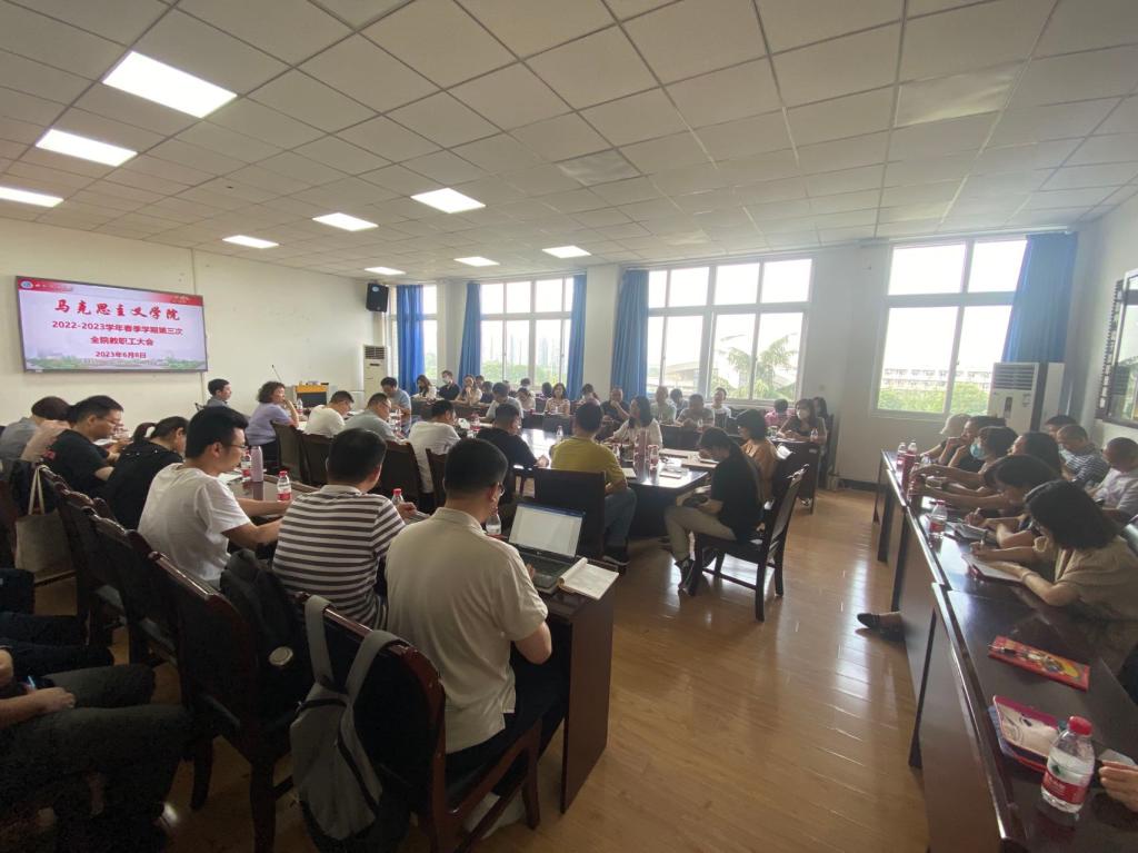 6月8日下午,學院在思學樓D507召開了2022-2023學年春季學期全院教職工大會,學院黨委書記、院長崔發展,學院黨委副書記、紀委書記林莉,院長助理張莉、張劍,學院全體教職工參加了此次會議。會議由學院黨委書記、院長崔發展主持。