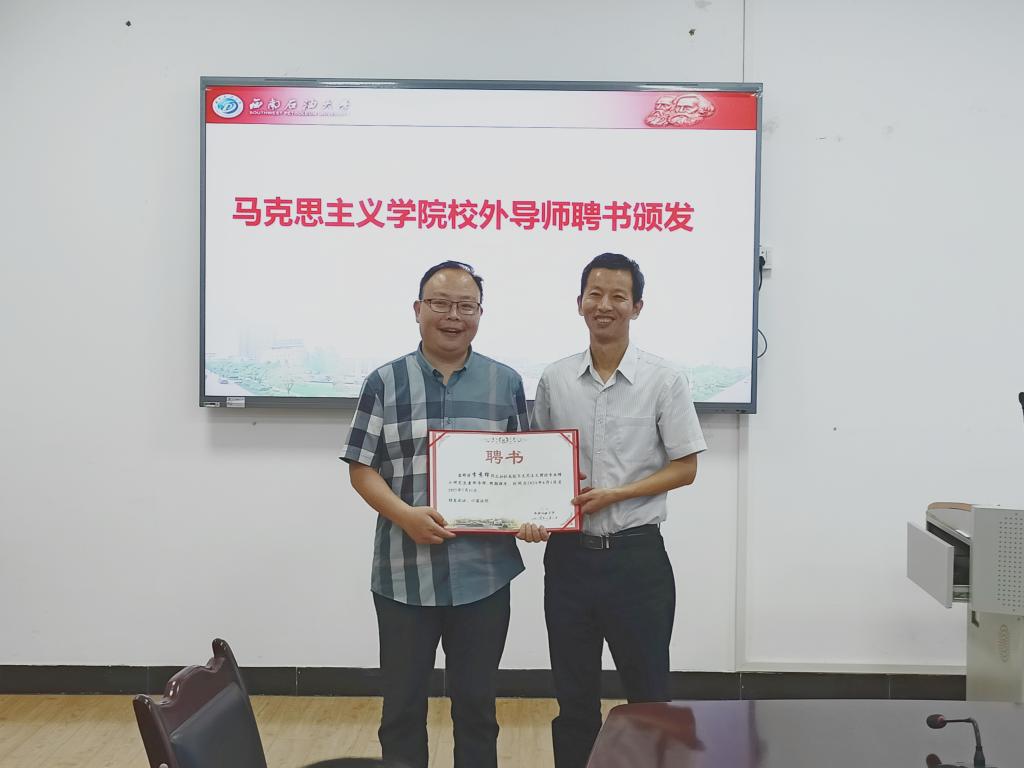 學院黨委書記、院長崔發展為校外兼職導師頒發聘書