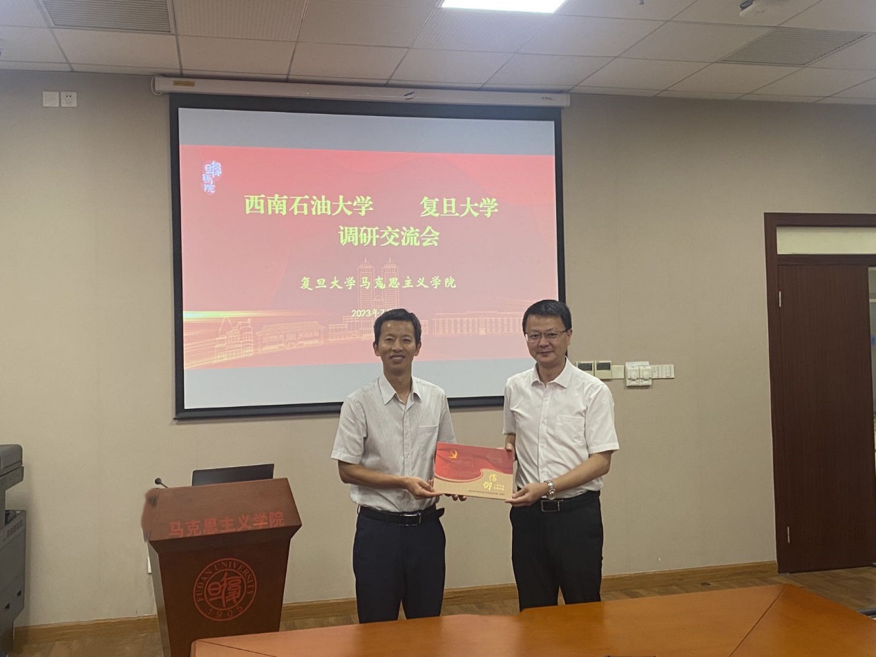 譚院長對我院一行的到來表示熱烈歡迎,并帶領大家參觀了該院的文化墻,面了解了復旦大學馬克思主義學院的發展歷程、思政課教學、學科建設、師資隊伍建設、科學研究、基層黨建工作等相關情況。崔院長對復旦大學的熱情接待表示感謝,并介紹了學院的基本情況以及此次調研的目的。他表示,復旦大學馬院是全國首批重點馬克思主義學院,希望通過此次調研交流,向復旦大學馬院學習好的經驗做法,切實加強學院思政課程建設,推動馬克思主義理論學科高質量發展。隨后,張新寧副院長介紹了復旦大學馬克思主義學院的學科建設和科研情況,教學辦公室劉翔宇介紹了思想政治理論課的教學改革創新、課程設置等方面的經驗和做法。