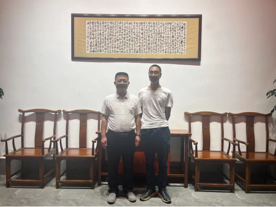 廖宇超(左)同潘昱洲(右)在三合村合影