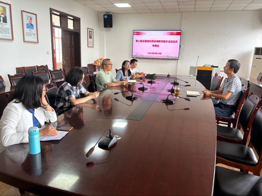 9月18日下午,學(xué)院在思學(xué)樓D507會(huì)議室召開第三屆全國(guó)高校思政課教學(xué)展示活動(dòng)動(dòng)員部署會(huì)。會(huì)議由學(xué)院黨委書記、院長(zhǎng)崔發(fā)展主持,院長(zhǎng)助理和相關(guān)教師參加。