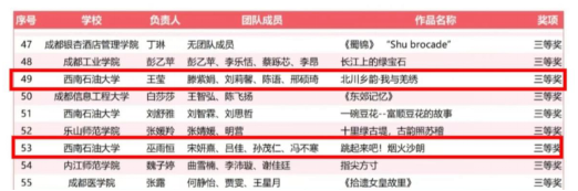 自接到賽事邀請以來,我院高度重視本次比賽。從校賽到省賽,兩支隊伍的團隊成員齊心協力,認真準備。采取線上線下結合的方式,先后完成北川采風、腳本撰寫、素材收集、視頻制作和配音等工作,得到了“羌繡”與“沙朗”兩位非遺傳承人的大力支持。《北川鄉韻·我與羌繡》的團隊成員紛紛表示:“這次比賽給了我們一個學思踐悟、實踐出真知的機會,也弘揚了中華優秀傳統文化,樹立了文化自信。”《跳起來吧!煙火沙朗》的團隊成員們也感嘆:“這次比賽讓我們深刻體會到了團隊合作及互幫互助的重要性。一個人可能走得更快,但一群人走才能走得更遠。”
