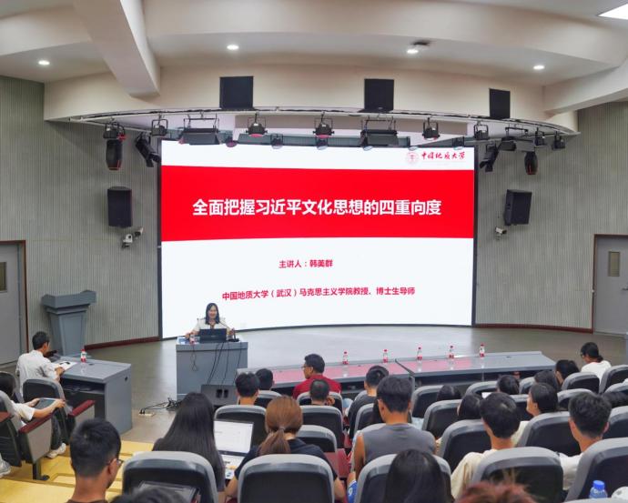 5月27日上午,中國地質大學(武漢)馬克思主義學院二級教授、博士生導師韓美群應邀來我院作“全面把握習近平文化思想的四重向度”學術報告。馬克思主義學院院長崔發展出席并主持會議,學院近200位師生參加報告會。