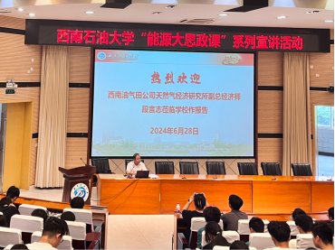 6月28日上午,西南油氣田公司天然氣經濟研究所副總經濟師段言志應邀參加西南石油大學“能源大思政課”系列宣講活動,在思學樓A114報告廳為學生代表帶來主題為“加快天然氣增儲上產,全力保障國家能源安全”的宣講。