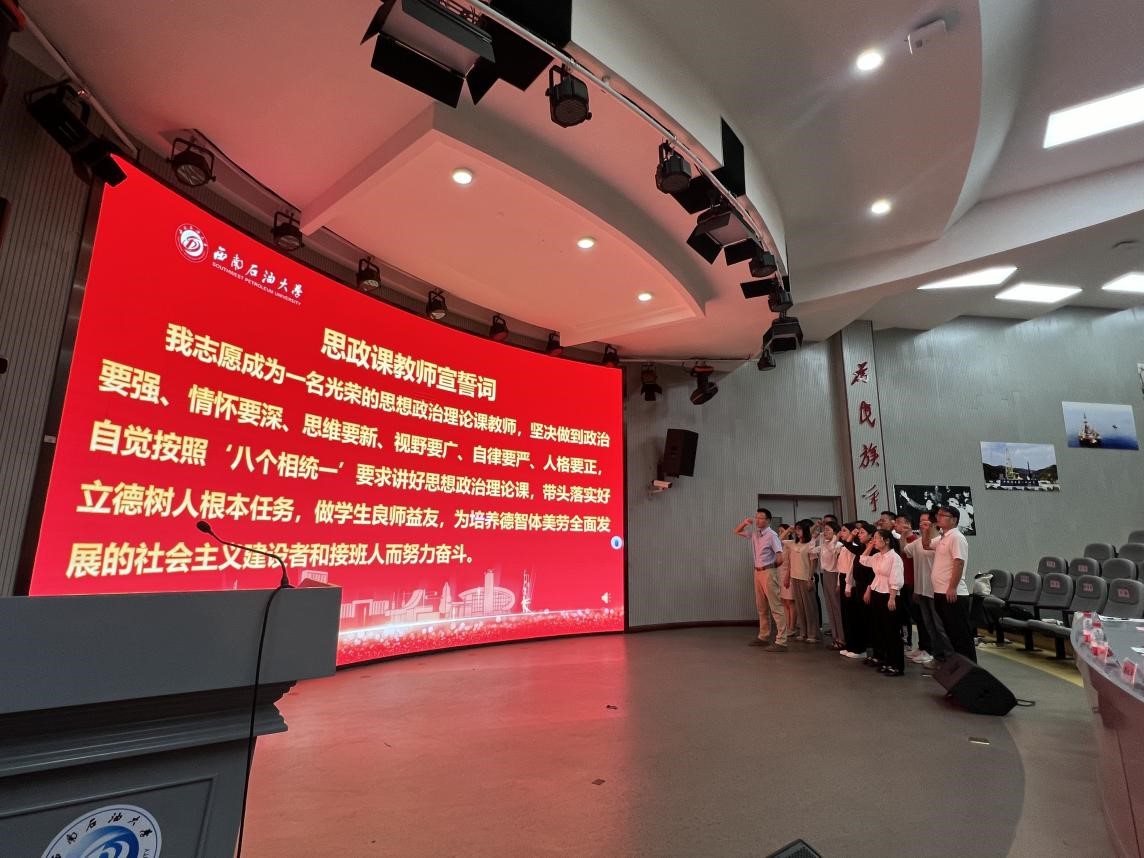 學(xué)院優(yōu)秀教師代表、全國高校思想政治理論課教學(xué)展示活動特等獎獲得者任重遠(yuǎn)帶領(lǐng)新進(jìn)教師進(jìn)行了莊嚴(yán)的入職宣誓。