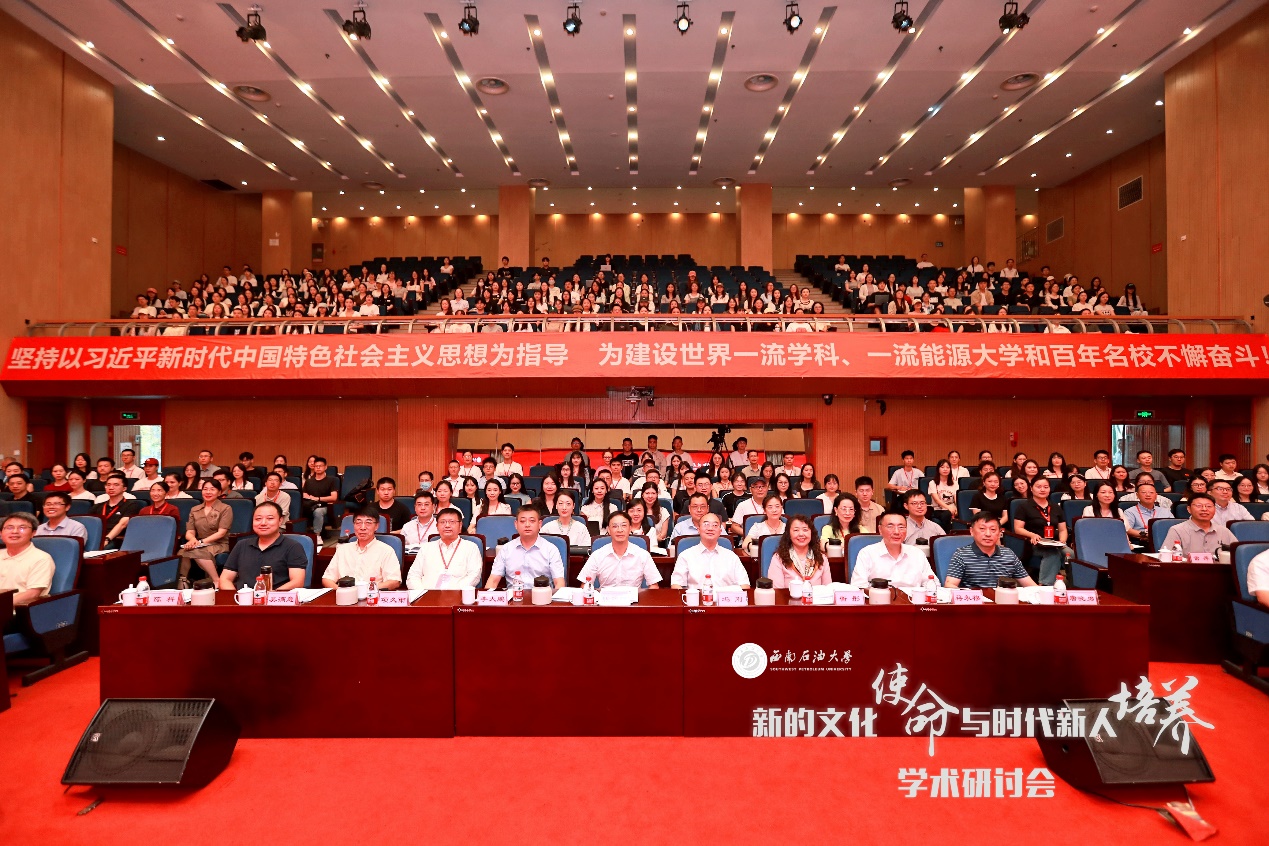 為深刻領會習近平文化思想,系統梳理思想政治教育學科40年發展的成果與經驗,在全國上下慶祝中華人民共和國成立75周年之際,由中國教育發展戰略學會思想道德建設專業委員會和西南石油大學聯合主辦,北京科技大學思想政治工作研究院、武漢大學主流意識形態研究院、西南石油大學馬克思主義學院、全國高校思政課名師工作室(西南石油大學)、西南石油大學學報(社會科學版) 編輯部、四川網絡文化研究中心、四川省大中小學思政課一體化共同體(牽頭單位:西南石油大學)、四川省大中小學思想政治教育一體化基地(四川省石油文化與石油精神傳承基地)承辦的“新的文化使命與時代新人培養”學術研討會于2024年9月28日在西南石油大學(成都校區)召開。本次會議代表有來自北京科技大學、武漢大學、中山大學、四川大學、電子科技大學、重慶大學、西南大學、西南財經大學等80余所高校的師生,也有來自西南石油大學牽頭的四川省大中小學思政課一體化共同體的7個中小學的老師代表。參會師生共計500余人,其中老師200余人,碩博士學生300余人。開幕式上,西南石油大學黨委書記張烈輝,四川省委教育工委、省教育廳宣傳思想與統戰工作處處長李大鵬,中國教育發展戰略學會副會長兼思想道德建設專業委員會理事長、北京科技大學思想政治工作研究院院長馮剛先后致辭。開幕式由西南石油大學黨委副書記、工會主席衡彤主持。