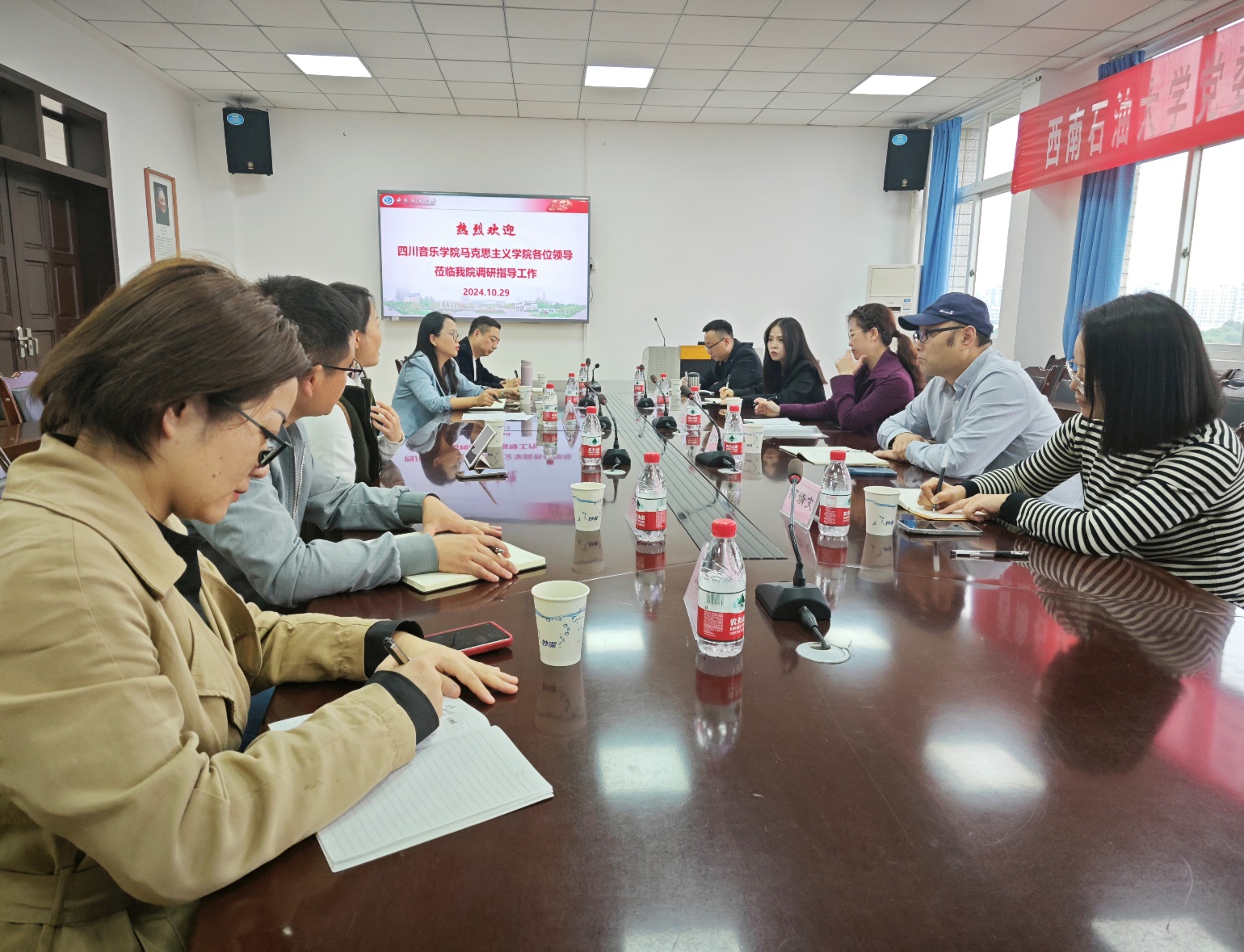 10月29日,四川音樂學院馬克思主義學院鄧微副院長一行來我院調研交流,學院院長崔發展、副院長張莉,我校藝術學院黨委書記夏艷等院領導與來賓一起座談交流。