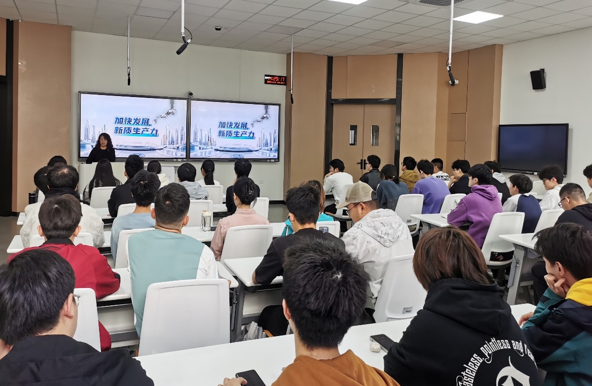 在課堂教學(xué)過程中,同學(xué)們聚精會神、積極互動。授課結(jié)束后,學(xué)生們紛紛表示,此次課程在了解新質(zhì)生產(chǎn)力理論知識的同時,更激發(fā)了他們關(guān)注國家發(fā)展、投身國家建設(shè)的熱情,引導(dǎo)他們站在國家發(fā)展的高度看待當(dāng)前的形勢與政策,激勵他們努力學(xué)習(xí)專業(yè)知識,為國家發(fā)展貢獻(xiàn)自己的智慧和力量。