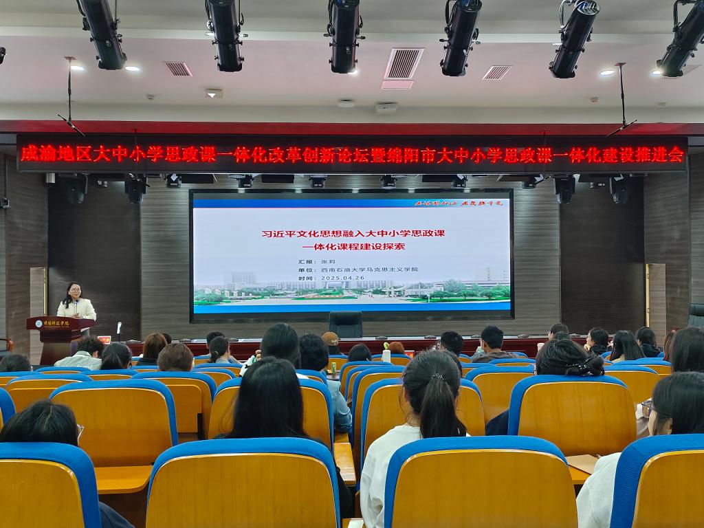 4月26日,成渝地區大中小學思政課一體化改革創新論壇暨綿陽市大中小學思政課一體化建設推進會在綿陽師范學院舉辦。我院副院長張莉出席會議并作“習近平文化思想融入大中小學思政課一體化課程建設”的經驗分享。