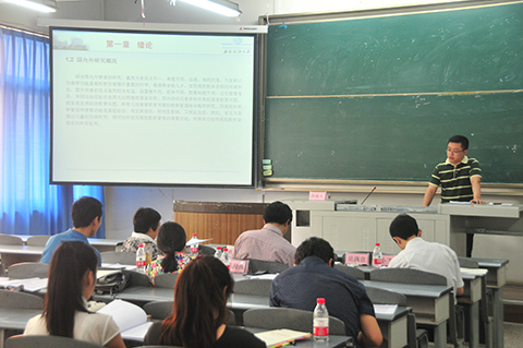 本次答辯會共設(shè)置四個答辯小組,于早上8:30開始正式答辯。答辯分答辯人個人陳述、專家提問、答辯人回答、答辯委員會總結(jié)等環(huán)節(jié)。在個人陳述后,答辯委員會評委老師圍繞論文的選題、結(jié)構(gòu)、意義和創(chuàng)新點等諸方面提出問題,指出了論文中存在的不足,并就如何修改和完善論文提出了建設(shè)性的意見和建議,要求同學(xué)們整改。
