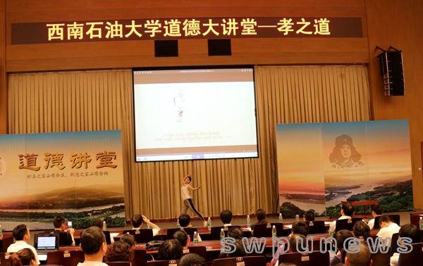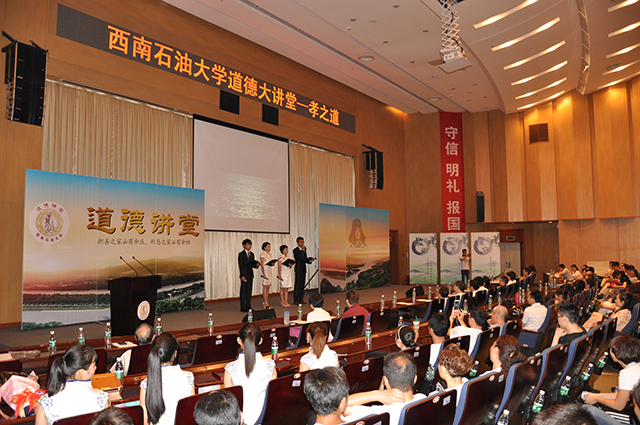 6月5日下午,由政治學(xué)院、機(jī)電工程學(xué)院、體育學(xué)院主辦,政治學(xué)院思想道德修養(yǎng)與法律基礎(chǔ)教研室承辦的《西南石油大學(xué)道德講堂——孝之道》在圖書館學(xué)術(shù)報告廳隆重舉行。學(xué)校黨委宣傳部、校工會領(lǐng)導(dǎo)、部分其他院系領(lǐng)導(dǎo),政治學(xué)院、機(jī)電工程學(xué)院、體育學(xué)院黨政全體領(lǐng)導(dǎo)、全體教職工以及政治學(xué)院全體研究生參加了本次活動。