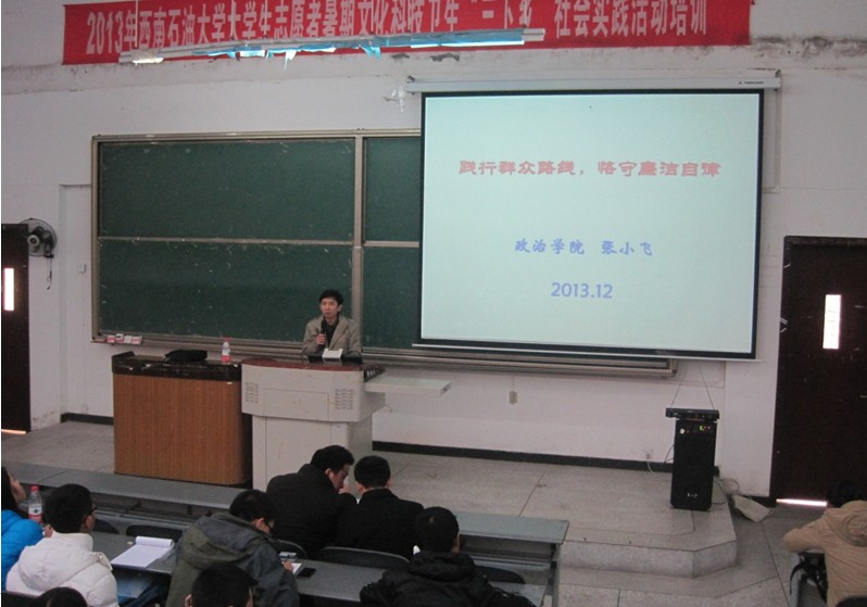 12月5日下午4:30,政治學院院長張小飛教授在明辨樓C205為石油工程學院全體學生干部作題為“踐行群眾路線,恪守廉潔自律”的講座。