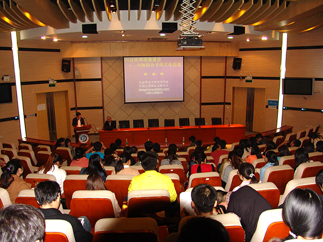 在報告中,董教授從食品安全、社會管理、人際關系等方面的嚴峻形勢入手,探討了當代知識分子如何應對的問題。通過中西對比、實證分析等手段,闡述了知識分子應在科技道德與學風建設等層面培育責任意識、健全理性自覺。最后,張小飛院長對這次報告作了較為中肯的點評,鼓勵大家多關注現實問題,在面對問題時,要注重弘揚知識分子應有的勇于自我擔當的精神。