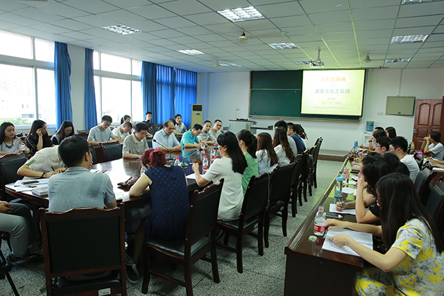 詹教授的學(xué)術(shù)報告充滿著智慧、內(nèi)涵,同時又蘊含著詩意,他用自身的智慧和經(jīng)驗對道家文化做了深刻的解讀,大家在感受道家文化魅力的同時也欣賞到了優(yōu)美的音樂,學(xué)到了養(yǎng)生的技巧。張院長在總結(jié)發(fā)言中指出:“道家文化是一種充滿智慧的語言、是一種深刻思想的解讀,具有非常重要的當(dāng)代價值。”。此次報告會得到了大家的高度贊揚,與會師生均表示收益頗豐,學(xué)術(shù)討論在熱烈的掌聲中結(jié)束。報告會結(jié)束后,我院教職工與詹石窗教授就道家文化相關(guān)問題進行了深入探討。(審核:張培高)
