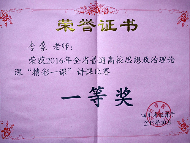 10月15日,四川省普通高校思想政治理論課“精彩一課”講課比賽決賽在西南財經大學順利召開,我校馬克思主義學院5名教師參加并喜獲佳績,一等獎1項,二等獎1項,三等獎3項。