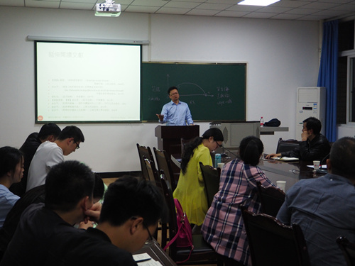 講座伊始,余教授從概念談起,介紹了古代中西方對(duì)于“大山”和“天”的不同理解,分析了本體與本心、真如與佛性、七真如、是、道等理念,這一解說(shuō)使在座的師生對(duì)于本次講座內(nèi)容有了初步的了解,為此次學(xué)術(shù)報(bào)告更加深入的推進(jìn)做了重要鋪墊。隨后余教授切入正題,談到了五個(gè)命題,第一個(gè)命題為“萬(wàn)物皆備于我”,余教授從孟子談起,講到人性四說(shuō),孟子的性善論對(duì)后世影響最大,并詳細(xì)介紹了這一觀點(diǎn),總結(jié)為我的世界存在于我的看里,存在于我的感覺(jué)里。第二個(gè)命題為“吾心即宇宙”,余教授從陸九淵談起,講到宋明理學(xué)中,心與理的關(guān)系是最基本的哲學(xué)問(wèn)題之一,并以此展開(kāi)論述,詳細(xì)介紹了陸九淵的心學(xué)觀點(diǎn)。第三個(gè)命題為“心無(wú)外物”,余教授介紹了心學(xué)的巔峰——陽(yáng)明心學(xué),心無(wú)外物是王陽(yáng)明哲學(xué)的第一命題,余教授介紹到:有意即是有物,意是現(xiàn)象世界的發(fā)現(xiàn)者和創(chuàng)立者,并介紹了著名的山花之喻。第四個(gè)命題為“物方生方死”,余教授在此談到了辯證法的實(shí)質(zhì),介紹了哲學(xué)家惠施,闡述了相對(duì)論不是辯證法、物沒(méi)有時(shí)空、1/26秒、沒(méi)有當(dāng)下、出生入死等觀點(diǎn)。第五個(gè)命題為“物不遷論”,余教授介紹了佛教哲學(xué)的創(chuàng)始人僧肇,詳細(xì)闡述了僧肇的觀點(diǎn)。隨后,余教授與在座師生進(jìn)行了氣氛活躍、思想深入的互動(dòng)交流。