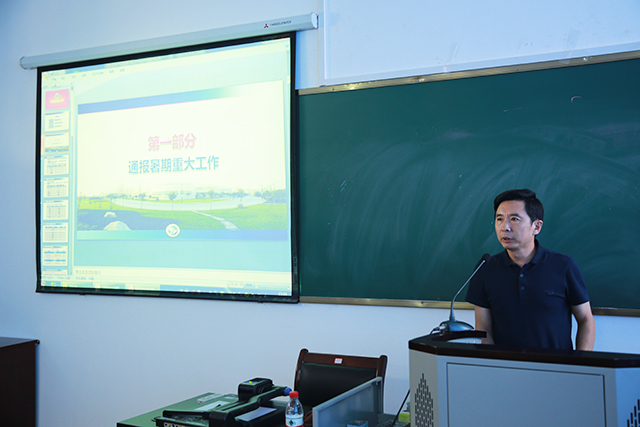 最后,張小飛院長(zhǎng)傳達(dá)了校長(zhǎng)趙金洲在2017年度秋季學(xué)期工作會(huì)議上的講話精神。張?jiān)洪L(zhǎng)詳細(xì)傳達(dá)了與學(xué)院相關(guān)的國(guó)家社會(huì)科學(xué)基金立項(xiàng)、四川省第八屆教學(xué)成果獎(jiǎng)評(píng)選、一流學(xué)科建設(shè)高校建設(shè)方案修改報(bào)送、國(guó)家公派留學(xué)項(xiàng)目、國(guó)際學(xué)生招生等暑期重大工作。趙金洲說(shuō),2017年下半年,是學(xué)校事業(yè)發(fā)展承前啟后、繼往開(kāi)來(lái)至關(guān)重要的半年。全校上下必須深入學(xué)習(xí)貫徹習(xí)近平總書(shū)記系列重要講話精神和治國(guó)理政新理念新思想新戰(zhàn)略,堅(jiān)決落實(shí)中央、省委和學(xué)校黨委行政的決策部署,緊緊圍繞“建成以工為主,石油天然氣及其配套學(xué)科世界一流、多學(xué)科協(xié)調(diào)發(fā)展的高水平能源特色大學(xué)”的辦學(xué)目標(biāo),強(qiáng)化機(jī)遇意識(shí)和擔(dān)當(dāng)精神,繼續(xù)盯緊抓實(shí)學(xué)校黨委、行政確定的全年十個(gè)方面的40項(xiàng)重點(diǎn)任務(wù),同時(shí)結(jié)合新形勢(shì)新任務(wù)新要求,全力抓緊抓好10項(xiàng)主要任務(wù)的落實(shí),力爭(zhēng)質(zhì)量提升有新成效,改革創(chuàng)新有新突破,作風(fēng)建設(shè)有新變化,在建設(shè)世界一流學(xué)科和高水平特色大學(xué)的征程中邁出新步伐、取得新成績(jī),向黨的十九大和學(xué)校第二次黨代會(huì)獻(xiàn)禮。
