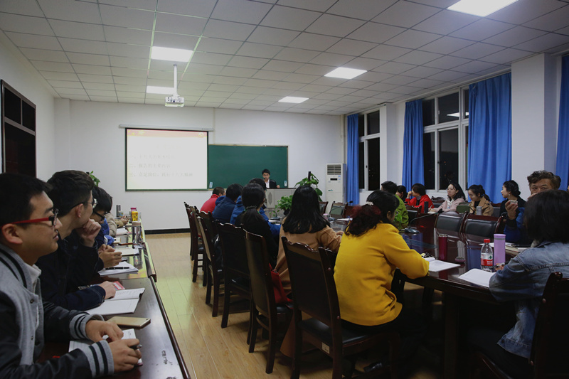 11月18日晚7點(diǎn),中央黨校李雙套副教授在思學(xué)樓D507作題為“走進(jìn)新時(shí)代,譜寫新篇章”的十九大精神解讀專題報(bào)告。報(bào)告會(huì)由馬克思主義學(xué)院院長(zhǎng)張小飛主持,學(xué)校十九大報(bào)告宣講團(tuán)成員、學(xué)院全體研究生以及習(xí)近平新時(shí)代中國(guó)特色社會(huì)主義思想研究會(huì)成員參加了本次報(bào)告會(huì)。