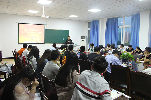 2018年4月19日晚 ,應馬克思主義學院、科研處和四川省能源安全與文化社科普及基地邀請,廈門大學校黨委宣傳部副部長,碩士生導師肖斌副教授在思學樓D507作了以《新時代堅持和加強黨的全面領導的三重邏輯》為題的學術報告,馬克思主義學院院長張小飛、科研處副處長陳怡男、組織部副部長張鳳出席報告會,馬克思主義學院部分教師、全體研究生和其他學院師生近100人聆聽了報告會,報告會由馬克思主義學院院長張小飛主持。