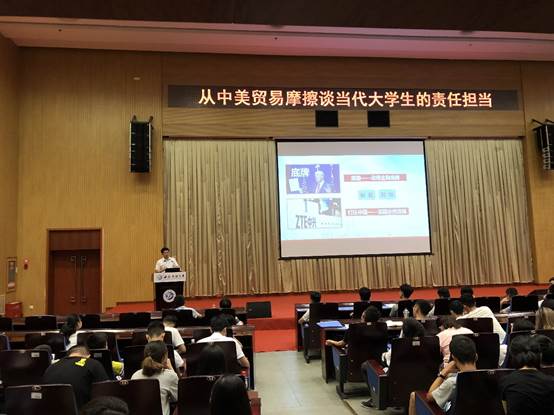 趙正文以中美貿易摩擦帶來的幾點思考為切入點,闡述了中美貿易摩擦的現狀和演變歷程,并從中美貿易摩擦的思考聯系到當代大學生要有時代的責任和擔當,要肩負起歷史賦予的使命,分析了當代大學生與中華民族偉大復興歷史征程同向同行的密切關系。