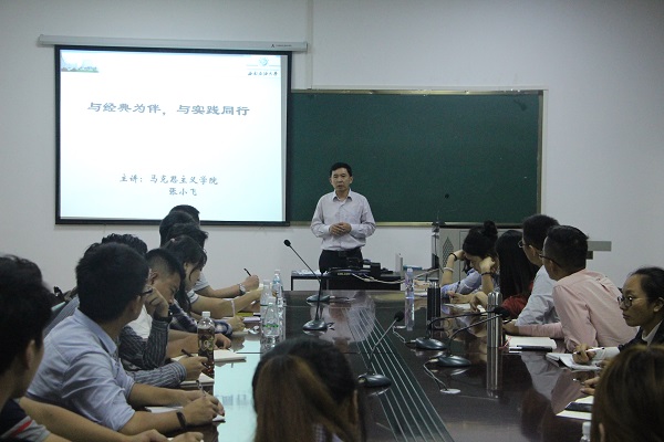 9月13日,馬克思主義學院院長張小飛為2018級新生講授了主題為“與經典為伴,與實踐同行”的“院長第一課”。