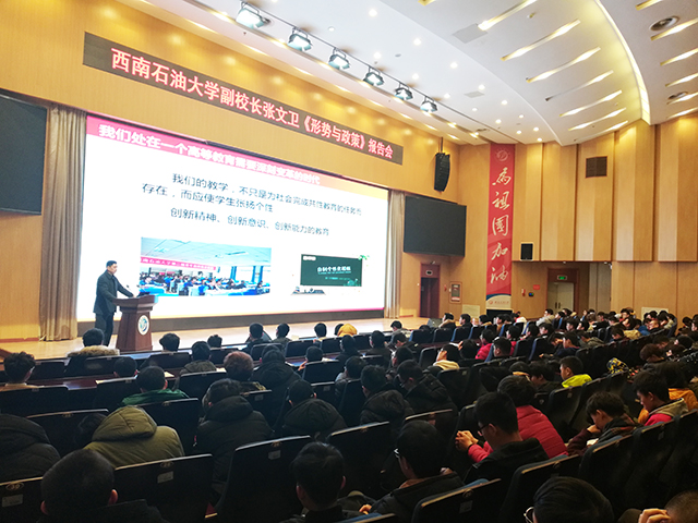 12月26日上午,校黨委常委、副校長(zhǎng)張文衛(wèi)走進(jìn)圖書館報(bào)告廳,以“準(zhǔn)確把握我們所處的時(shí)代”為題,為石油與天然氣工程學(xué)院、計(jì)算機(jī)科學(xué)學(xué)院、電氣信息學(xué)院2018級(jí)的500余名本科生作了一場(chǎng)生動(dòng)的形勢(shì)與政策報(bào)告會(huì)。