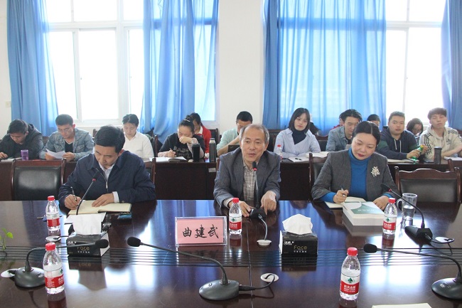 張小飛最后作總結發言,他代表學院對曲教授的到來表示感謝,并號召我院全體思政教師應以曲教授為標桿,在新的歷史時期,涵育正氣、增強底氣、拿出勇氣,理直氣壯的講好思政課,“給學生心靈埋下真善美的種子,引導學生扣好人生第一粒扣子”。