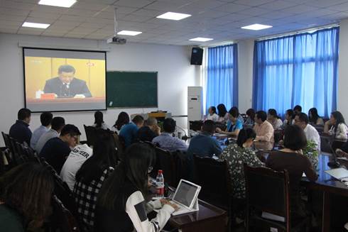 4月30日上午10:30,紀念五四運動100周年大會在人民大會堂舉行。馬克思主義學院組織全院師生在D507會議室集中觀看紀念大會直播,學習習近平總書記在大會上的講話。