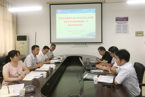 為了加快馬克思主義學(xué)院建設(shè),促進教學(xué)、科研和學(xué)科建設(shè)等工作更好發(fā)展,7月7日至9日,學(xué)院黨總支書記崔發(fā)展帶隊赴湖南省3所高校馬克思主義學(xué)院考察,先后走訪了長沙理工大學(xué)、湖南大學(xué)和中南大學(xué)高校馬克思主義學(xué)院,并與學(xué)院領(lǐng)導(dǎo)及相關(guān)教師進行了座談交流。