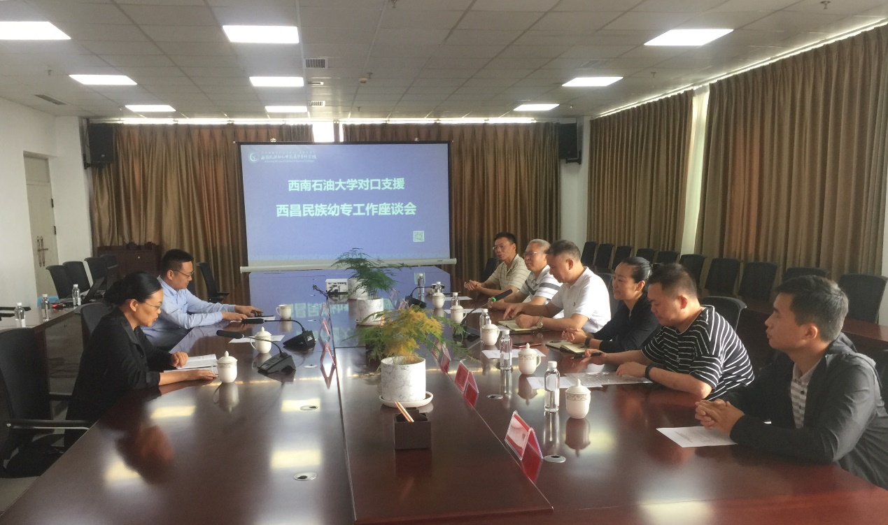 趙波簡要介紹了西昌民族幼專的發展現狀、建設目標和重點工作,對西南石油大學自教育部、省教育廳啟動高校對口支援工作以來,給予西昌民族幼專的支持和幫助表示衷心的感謝。他說,在西南石油大學的傾力支援下,學校的融媒體中心建設等工作逐步進入正軌,希望貴校在我校艱苦創業的重要時期繼續給予支持,精準支援,補短板、出特色、見實效,成為13所高校對口支援西昌民族幼專建設工作的典范,助力我校早日建成民族地區一流、特色鮮明的幼兒師范高等專科學校。