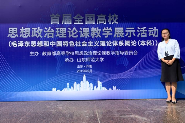談到參賽的感受,張莉說,很幸運能夠參加全國思政課教學展示活動并獲得特等獎。這離不開學校和學院對我的關心和栽培,離不開指導團隊老師的辛勤付出,離不開我的學生們在教學實踐中對我的反饋和幫助。這段教學比賽經歷讓我收獲了成長,對課程和教學有了新的理解,在今后的教學過程中,我將繼續不忘教學初心,努力達到習近平總書記對思想政治理論課教師提出的“六個要”的具體要求,認真對待每一位學生,不負每一份青春的期待。