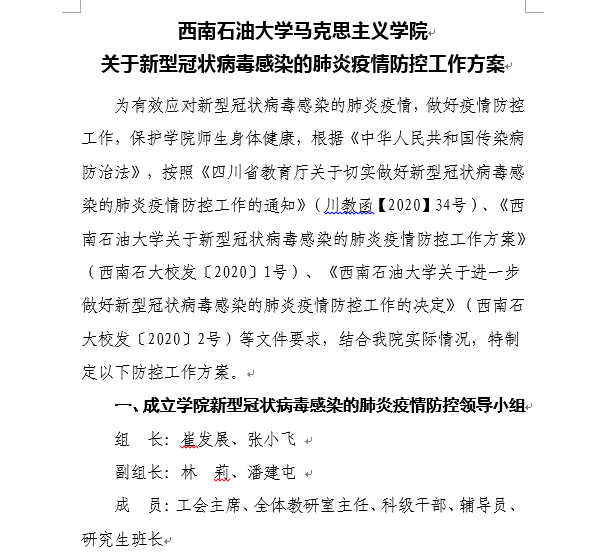 圖為學院疫情防控工作方案文件
