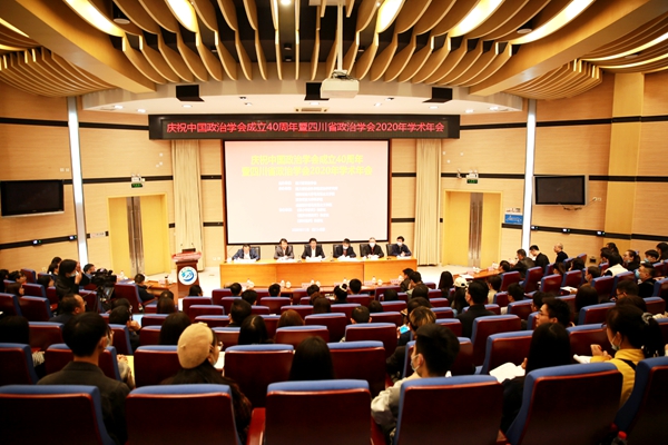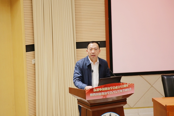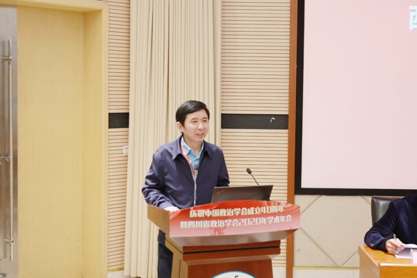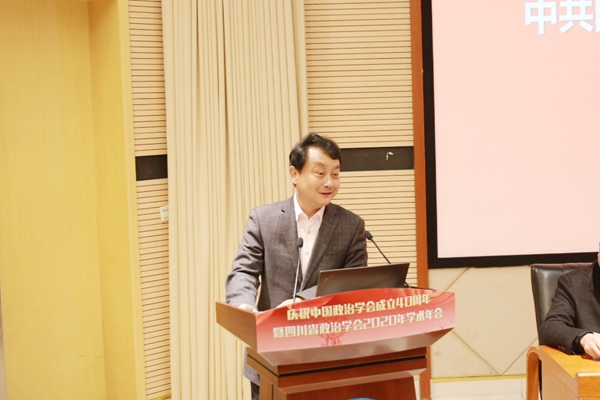 陳井安在報告中總結了學會過去一年的工作,他說,今天我們舉辦學術研討會,也是慶祝中國政治學會成立40周年的重要組成部分。希望我們在中國政治學會的帶領下,把四川政治學會建設成為凝聚力量,引導實踐,學科專業的學術共同體,為推進新時代中國政治學發展貢獻四川力量。他強調,四川政治學會要學深悟透黨的十九屆五中全會精神,把政治學理論研究與新時代中國的偉大實踐緊密結合起來。他表示,學會將繼續秉承服務理念,在專委會設置、青年人才獎勵、重大課題和學科建設的聯合申報等方面,更好發揮學會整合省內資源和與中國政治學會溝通的平臺作用,為不斷推進四川政治學的學術共同體高質量建設而努力奮斗。