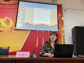 張莉老師以“中國共產黨百年輝煌與百年未有之大變局”的主題開啟宣講,“砍頭不要緊,只要主義真”,通過革命烈士的犧牲到無數仁人志士的奉獻,帶領參會的黨員群眾了解中國共產黨百年奮斗的光輝歷程和歷史性貢獻。再從國內外具體實例,通過不同視角的解讀,引導黨員群眾認識百年未有之大變局。