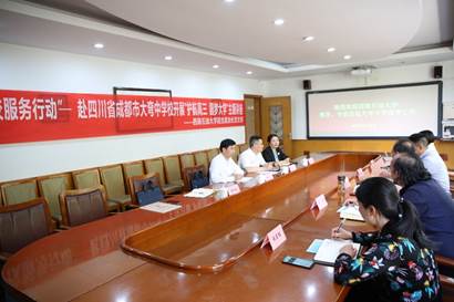 在成都市青白江區大彎中學,肖虎副處長和張小飛院長就思政課大中學校對接與互補、學生生涯規劃、學生心理健康等問題與大彎中學校長趙澤高進行討論。最后,張小飛院長表達了對兩校建立長期合作機制,加強交流溝通的期盼,表示可以從師資共享、資源共建、課程共當、成果共享等方面與大彎中學加強合作,。