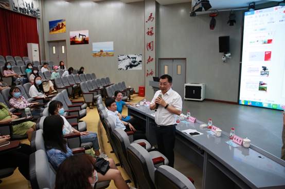 會上,張院長代表學院為周天春研究員頒發(fā)特聘教授證書,隨后周天春研究員以“石油石化精神的傳承”為主題展開講學。他深刻分析了國際國內(nèi)油氣形勢,通過圖表對比等方式展示了近年我國石油天然氣產(chǎn)量消費量和對外依賴度,指出石油能源作為工業(yè)的糧食和血液的重要性。同時,通過詳細回溯石油石化精神及其傳承,深入解讀以“苦干實干,三老四嚴”為核心的石油精神和以“求真務(wù)實、精細嚴謹、家國情懷”為主要內(nèi)涵的石化傳統(tǒng)。