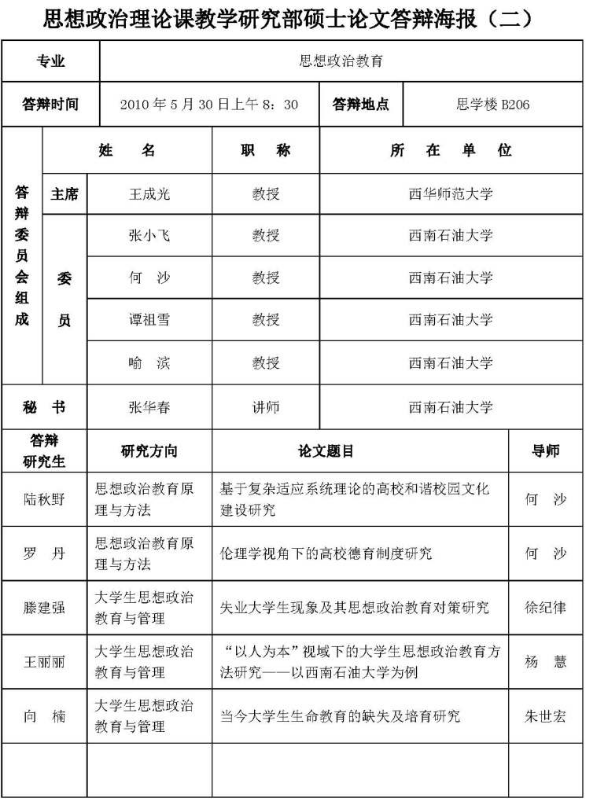 思政部07級(jí)碩士學(xué)位論文答辯安排